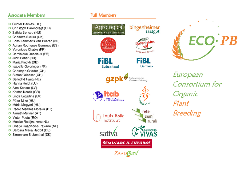 The European Consortium for Organic Plant Breeding (ECO-PB) was founded in 2001 with the aim of promoting organic plant breeding and building up an independent expertise. As a non-profit association the main purpose is to foster organic agriculture, protect the environment and conserve agrobiodiversity through plant breeding programmes designed specifically for the needs of organic farming systems. Therefore, the main focus areas of the European Consortium for Organic Plant Breeding (ECO-PB) include: