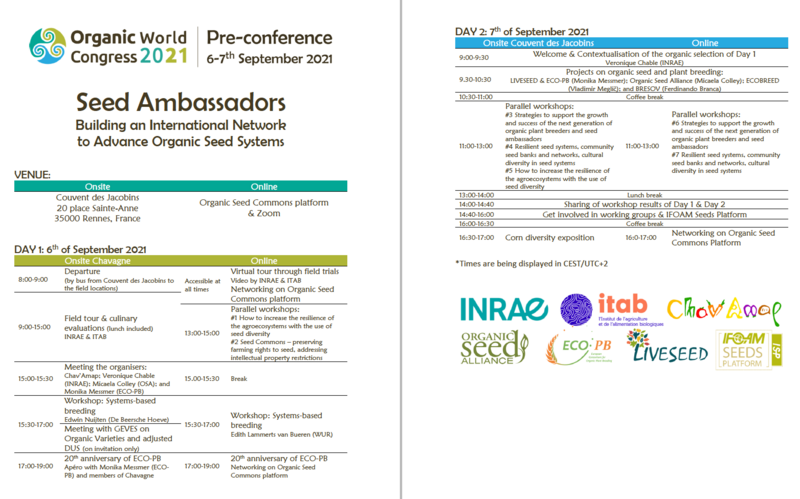 ECO-PB, Chav'Amap, Engagement.Biobreeding, IFOAM Seeds Platform, INRAE, ITAB, LIVESEED and Organic Seed Alliance | Rennes/France & Online | September 2021