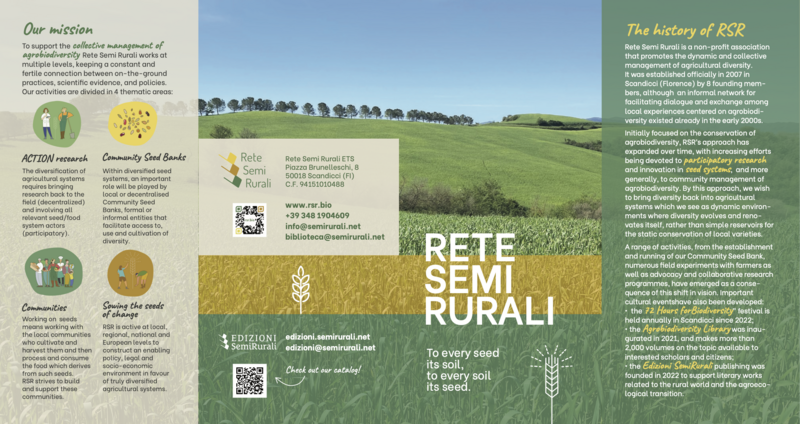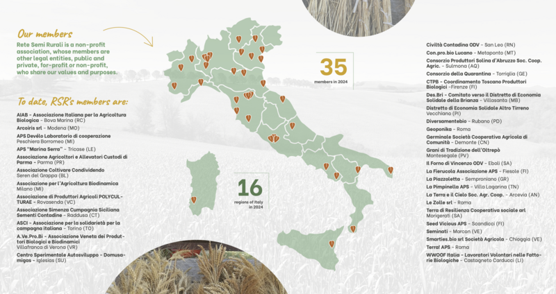 Rete Semi Rurali (RSR) is an Italian umbrella organisation, representing 35 national and regional organisations promoting Collective Management of Agrobiodiversity in organic and agroecological farming systems throughout the country.